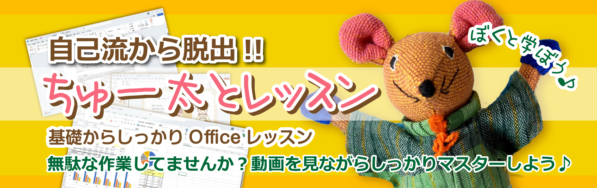 ビジネスで最もよく使われているビジネスソフトを、有効に活用するためにわかりやすいテキストに沿って基礎から学んでいただくコースです。